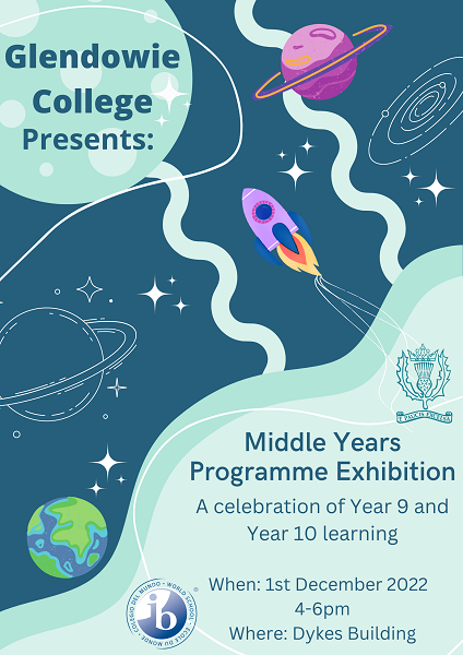 2023 Year 9 Glendowie College parents are invited to come to our Middle Years Programme (MYP) exhibition of student learning from 2022. This is an opportunity for you to come and talk to teachers across all subject areas and see what the International Baccalaureate MYP looks like. You will have the opportunity to ask questions and find out more about what exciting learning your child will be part of in the next two years. Details of this event are on the poster below.
